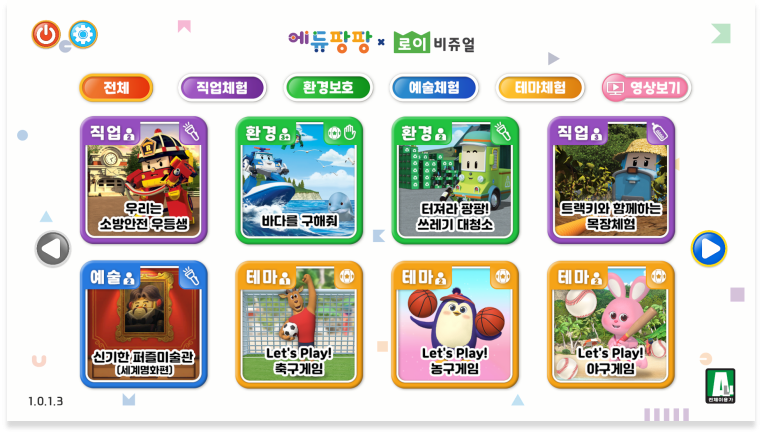원하는 교육 주제에 맞춰 애니메이션을 재생할 수 있으며, 게임 참여 없이 영상을 시청할 수 있습니다.